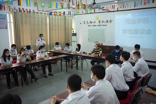 (海运学院供稿)4月22日下午,学工处黄毅处长在航海楼512会议室召开海运学院学生座谈会,与海运学子面对面,倾听学生心声。海运学院大中队长及近150名学生分两批次参加座谈。