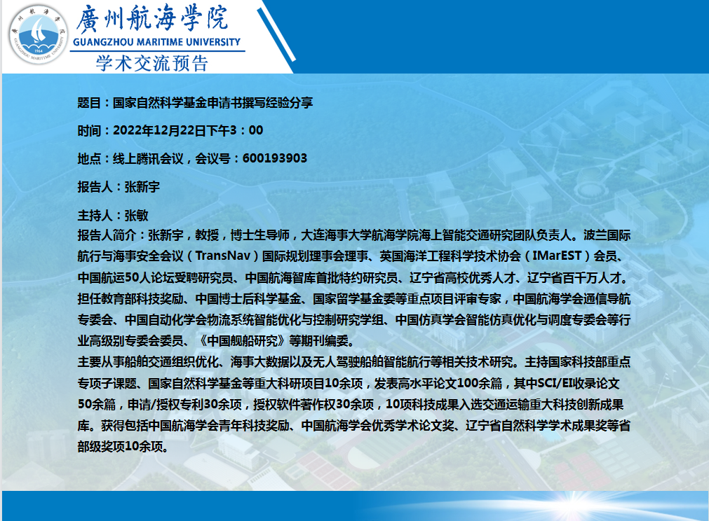 《张新宇教授学术交流》预告:国家自然科学基金申请书撰写经验分享