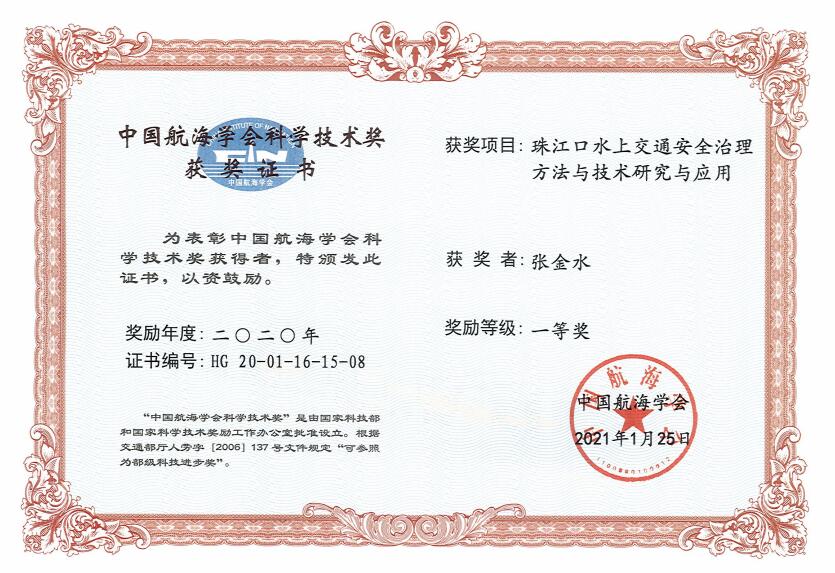(海运学院供稿)海运学院张金水老师荣获“中国航海学会科学技术奖获得者”一等奖。