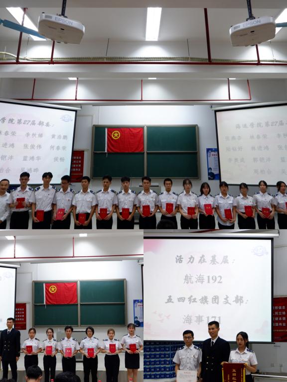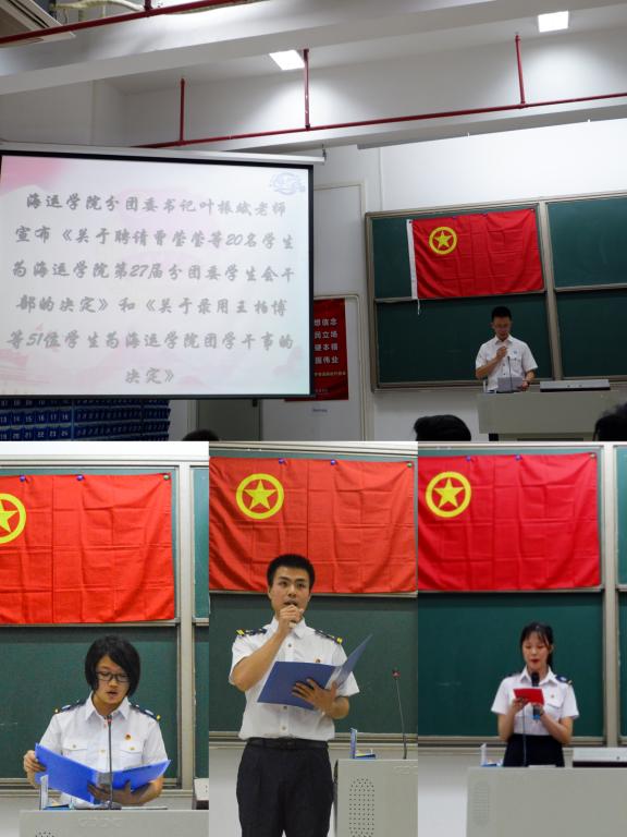 会上,与会老师分别为获奖的先进集体和优秀个人颁发了荣誉证书,为新任的学生干部颁发聘书后,叶振斌老师宣布了2020级海运团学新成员名单,新任职的学生干部面向全体师生做就职宣誓。