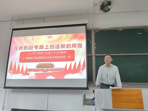 (海运学院供稿)3月22日上午,海运学院党委书记施斌在教学楼110课室向海运学院2021级海事管理专业的同学们讲授以《在新的赶考路上创造新的辉煌》为主题的“思政第一课”。