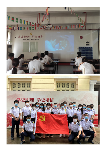 党委委员、亚丁湾护航船长刘春荣以《追梦,初心不改》为题,结合自身在亚丁湾护航的经历,讲述了一名共产党人的梦和初心。党委委员祝鸿作了《学党史,知党情,做合格党员》专题党课,带领同学们了解学习党史的意义,回顾党的光辉历史,并提出“学党史讲廉洁,不忘初心”。学生第二党支部书记吴成结讲解了《党员发展流程》专题,向同学们介绍发展党员的流程和工作要求,并提醒同学们要时刻以党员标准严格要求自己,不忘初心使命。