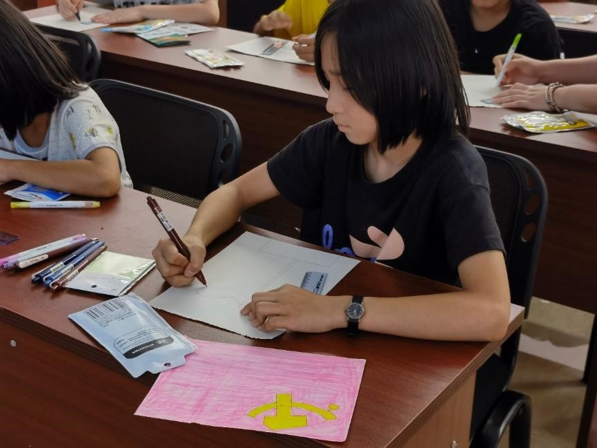 8月2日下午,队员们组织当地小学生,通过普通话科普、普通话互动游戏等形式,向孩子们展现了普通话的魅力。同时,为了引导孩子们加强党性认识,队员们为当地小学生介绍了党的光辉历程,并开展了“学画党旗”小课堂,让孩子们在趣味活动中坚定了一心向党、紧跟党走的信念,赓续传承红色血脉。