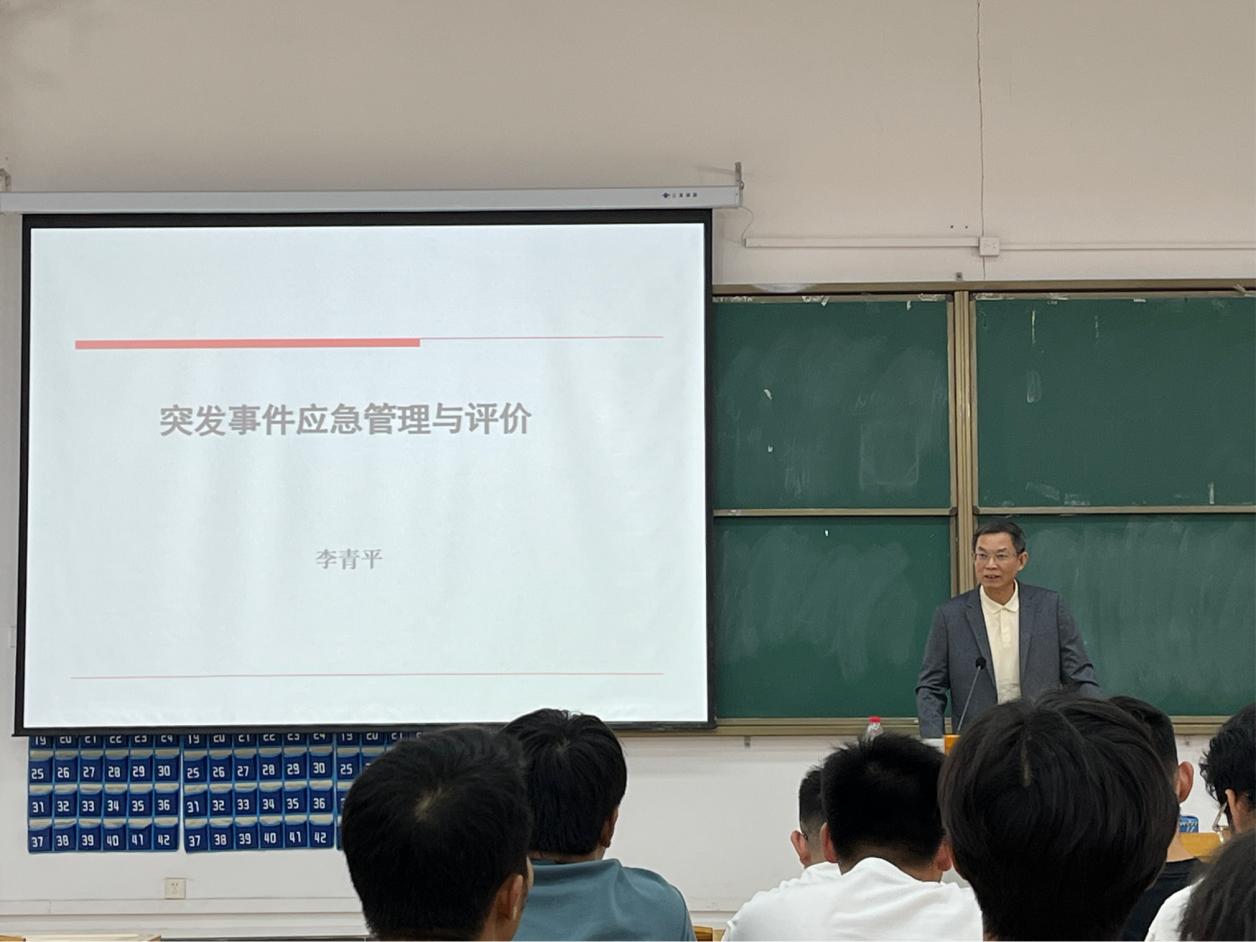 最后,李青平博士强调海上应急管理与国家实现海洋强国息息相关,希望同学们能够努力学习,学实用知识,会现场实践,努力为国家海洋强国贡献自己的青春力量。