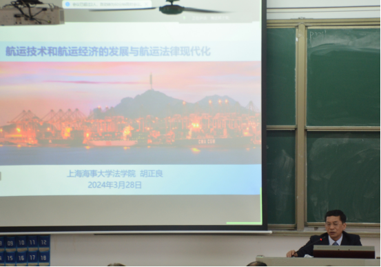 胡教授作为精通航运技术和航运经济的法学家,高屋建瓴展示出当代航运技术与航运经济发展的新业态下,航运法律面临的前沿问题,以及《中华人民共和国海商法》修改的必要性与指导思想,《中华人民共和国海商法》修改的主要内容与展望等宝贵的理论知识。在讲座过程中,胡教授还针对性的介绍了他所参加国内航运龙头法律起草、交通运输部规章、决策制定,以及《鹿特丹规则》起草中的若干问题,让聆听讲座的师生们从更宽广的视角领会交通强国、海运强国战略下,法律这个上层建筑对经济基础的重大作用。