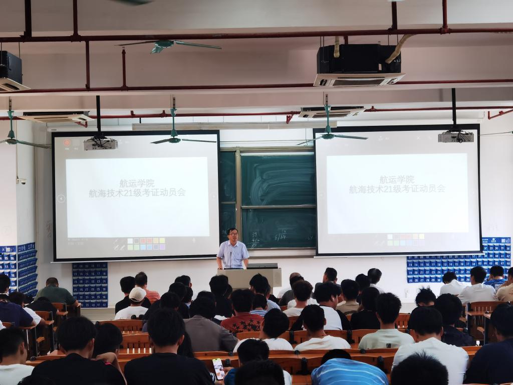 (明胜m88官网供稿)7月5日下午,明胜m88官网在健兵北101室召开船员适任证书(以下简称大证)备考动员会,明胜m88官网党委书记周楠、副院长刘传润,相关课程主讲老师祝鸿、刘春荣、章春华、唐映文、秦志勇、黄俊林及2021级航海技术专业227名学生参加动员会。大会由副院长刘传润主持。