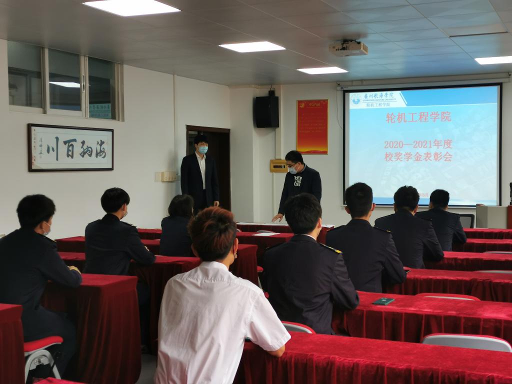 (轮机工程学院供稿)2022年3月24日星期四下午,在轮机楼511会议室我院举行了2020-2021年度奖学金的颁发和表彰大会。轮机工程学院党委副书记张志斌老师,中队长杨璟老师以及学生代表等出席本次会议。中队长杨璟老师主持了本次会议。