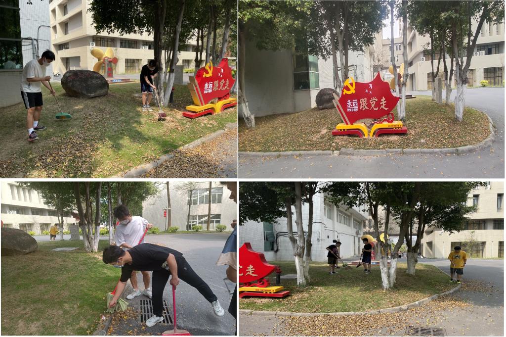 本次活动中,同学们各司其职,明确分工,对“永远跟党走”雕塑、绿化带杂草及道路上落叶进行了认真的清理,不放过任何一个角落。在大家的共同努力之下,轮机楼外公共区域焕然一新,洁净如初。