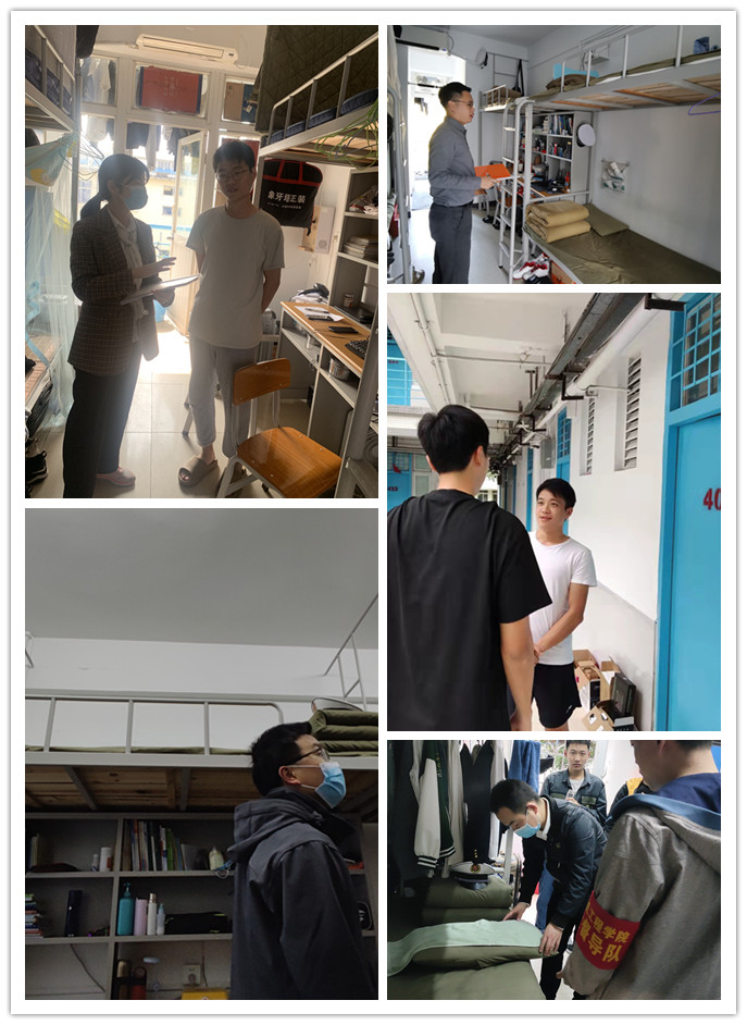 在本次检查中,并未发现明显的安全隐患,大多数同学能保持良好的内务质量,老师们在检查中也给同学们交流了宿舍文化、宿舍学风、半军管内涵、毕业生就业等问题。