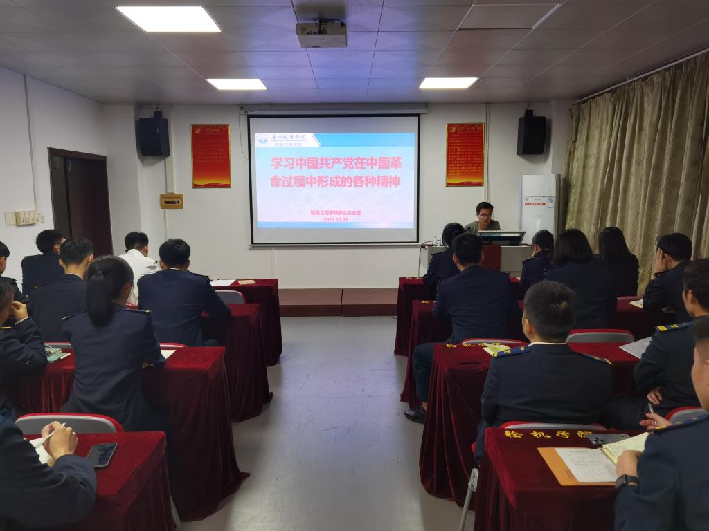 根据学院党委第二期党课安排,11月16日,轮机工程学院学生党支部于轮机楼511室组织了“中国共产党在中国革命过程中形成的各种精神”的党课。本期党课全体成员共31人参加了学习。由学生第一党支部郭世俊老师主讲。