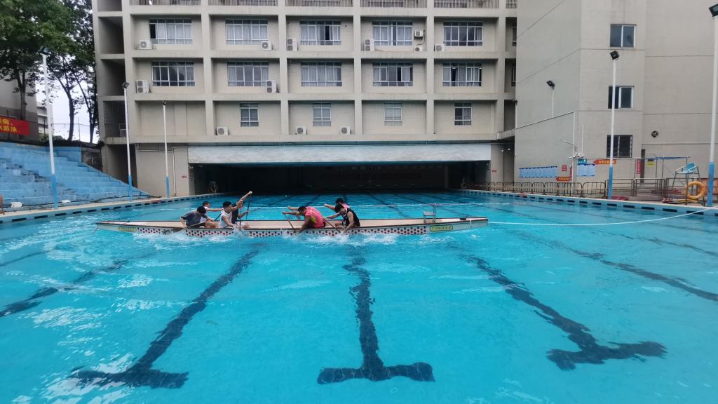 10月12日上午轮机工程学院、船舶与海洋工程学院、港口与航运管理学院等五个学院的龙舟拔河项目代表队抵达黄埔校区游泳场进行预赛。龙舟拔河项目参赛队伍由3位男生和1位男教师组成,预赛采取循环赛模式,积分最高的前两名晋级决赛。经过激烈的角逐,轮机工程学院代表队以循环赛全胜的姿态赢得决赛资格。