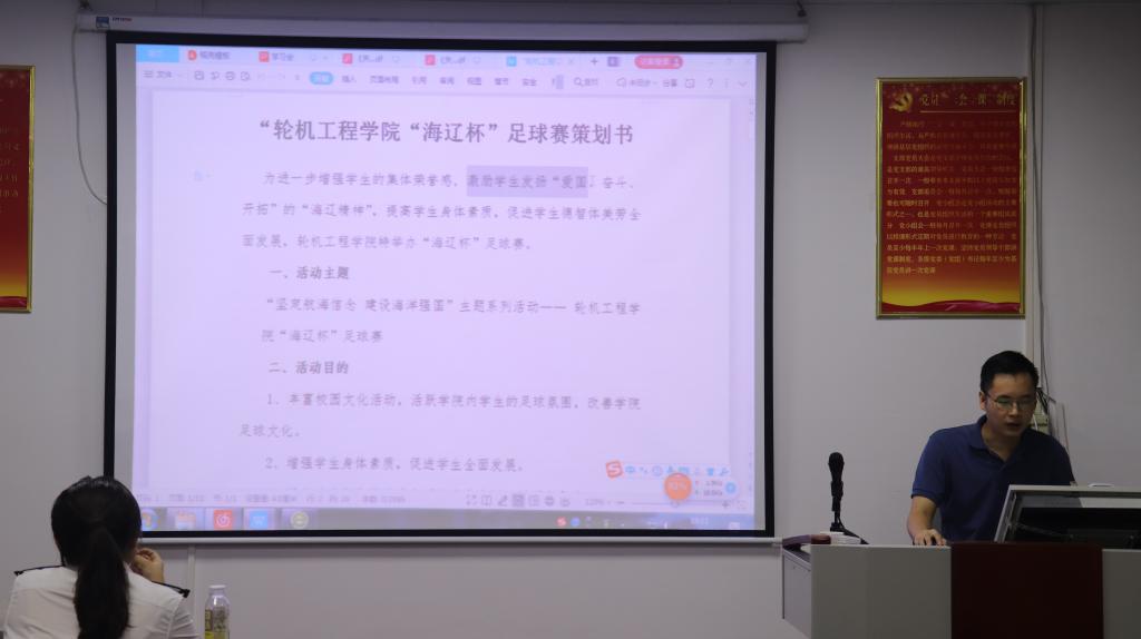 接着,会议对水运会筹备工作进行梳理和安排。陈老师首先介绍了本次水运会学院报名参赛情况,除了学生女子组外,学生男子组所有项目都报名参赛。陈老师要求团学干部,查漏补缺,做好组织和服务工作,保障我们的运动员顺利参赛,再创新佳绩。随后,陈老师对团学干部进行活动策划和活动通知的文稿撰写、组织工作的培训。最后,会议对正在筹划的“团干部讲团课比赛”、“轮机魅力Show”等活动进行进一步讨论和优化。