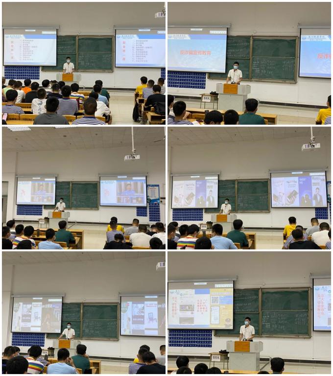 会议第一项进行安全教育。陈中队从防范新冠疫情、防火防盗、防诈骗、防范自然灾害、校园伤害、交通安全、食品卫生安全等方面进行宣传教育,并重点加强防诈骗宣传。陈中队要求全体同学关注“大学生安全教育”微信公众号、关注“广州反诈”服务号、注册穗安防诈小程序和下载安装“国家反诈中心”App。同时,陈中队结合日常学生受骗的案例,为现场的同学们解剖“网络刷单”、“裸聊”等各种类型骗局,并告诫同学们提高反诈意识,遇事多问几个“为什么”,万一碰到措手不及的困难要主动寻找老师、长辈和警察的帮助。