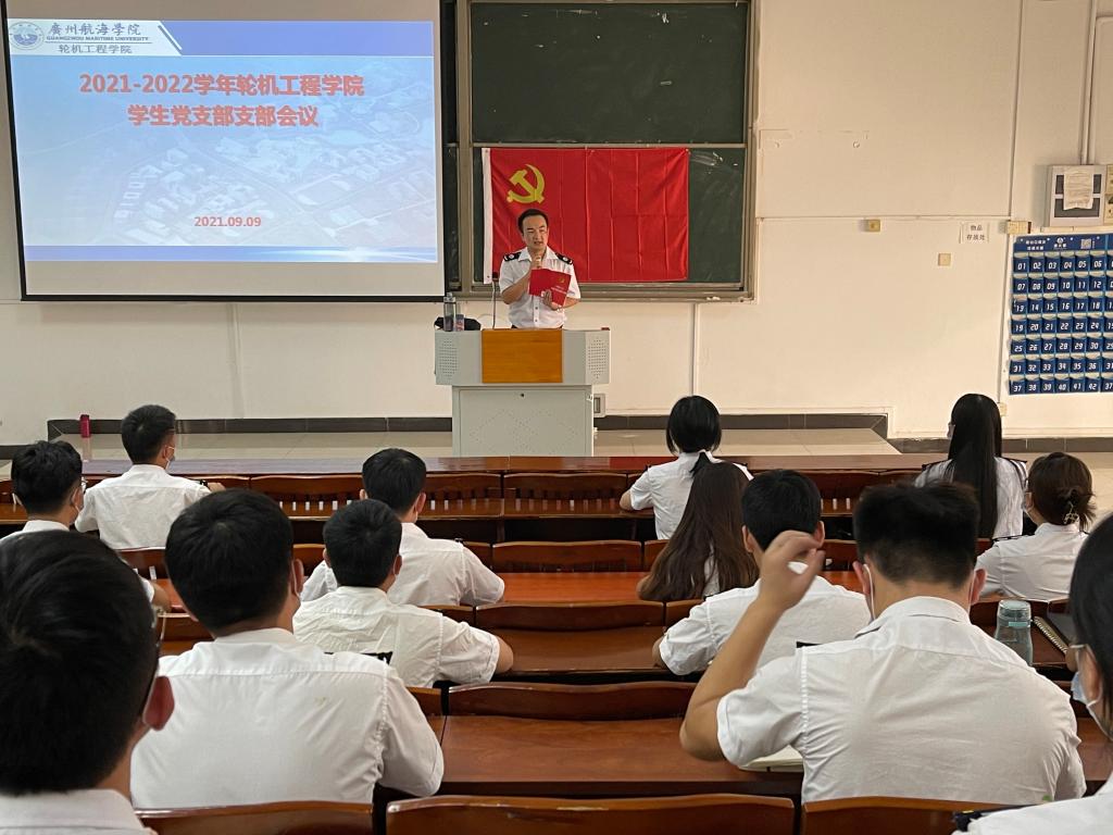 (轮机工程学院供稿)新学期到来,为了加强党支部成员教育和管理,遵循党要管党、全面从严治党工作要求,切实加强党的基层组织建设,促进轮机工程学院学生党建工作有序开展,2021年9月9日下午,轮机工程学院学生党支部于教学楼108室新学期工作会议。轮机工程学院学生第一党支部书记郭世俊、第二党支部书记赵垒、全体学生党员、党务工作团队、入党积极分子代表参加了会议。