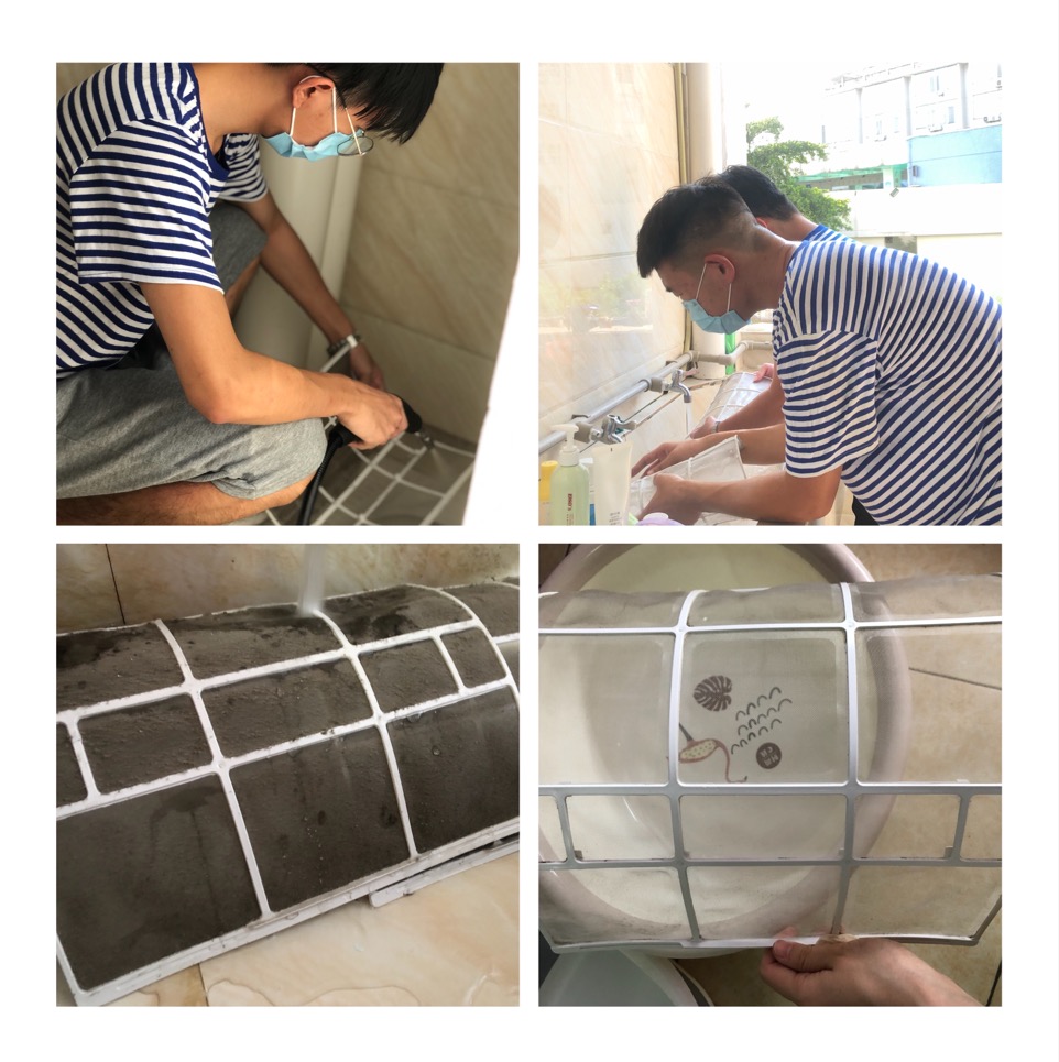 为了组织好本次活动,我院学生党支部组建了清洗空调工作小组,6月17日下午,蔡建邦老师、郭世俊老师给学生进行了专业培训。6月18日中午、下午,在赵垒、赵双双老师带领下,工作小组同学深入北区、南区女生宿舍清洗了空调。6月21--22日,在郭世俊老师带领下,工作小组同学深入轮机楼清洗了办公室、实验室空调。活动过程中,同学们相互配合,充分体现了合作精神,让志愿活动更加顺利。