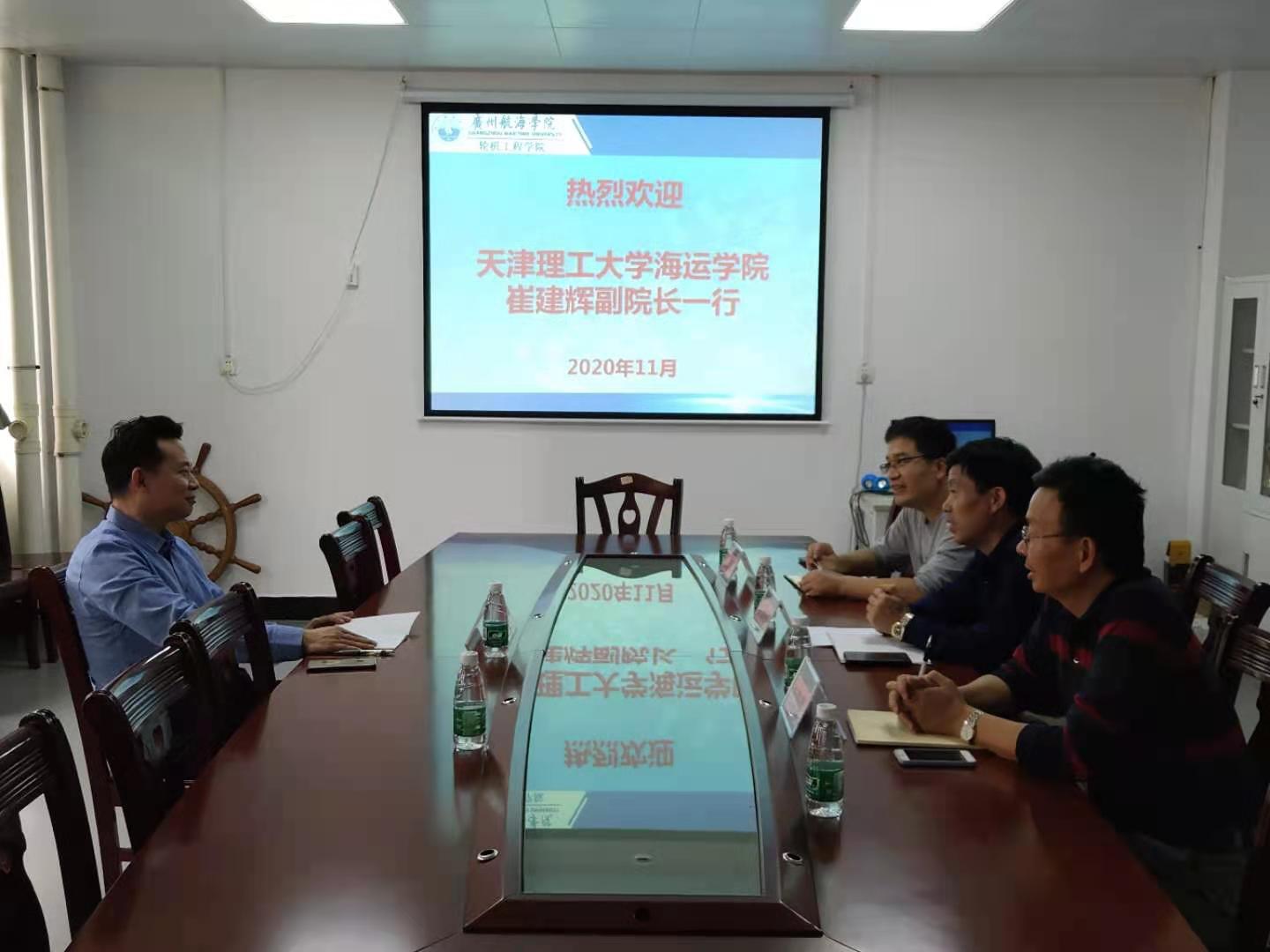 (轮机工程学院供稿)11月17日,天津理工大学海运学院崔建辉副院长来访轮机工程学院交流学习,并与学院领导、相关教师就轮机工程学院人才培养、专业建设、实验室建设及航海类专业“新工科”建设等方面进行了座谈交流。