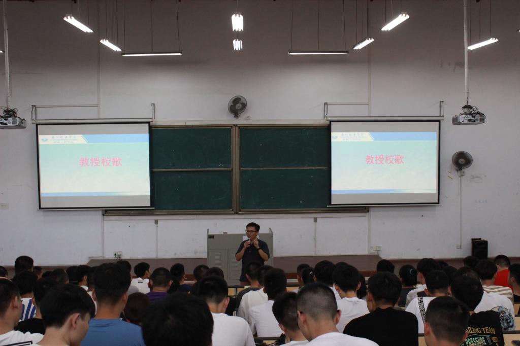 会上,容书记首先从大学生的认识问题谈起,从学习方式、教学方式、课程安排等方面对比高中与大学的区别,从生活环境的变化、人际交往问题、自我评价和评价体系的变化教育新生如何正确地处理大学的学习和生活问题。容书记最后寄语新生们,一是学好专业知识,培养自学和研究的能力;二是培养专业兴趣,多参加社会实践;三是学会为人处世,待人接物;四是考虑和规划好自己的人生定位。容书记的教育,声情并茂,案例丰富,使在座的新生们受益匪浅。会议最后是传承校园文化,教授校歌环节,并在激昂高亢的校歌中落下帷幕。