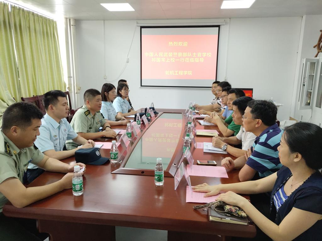 (轮机工程学院、船舶与海洋工程学院供稿)8月28日,中国人民武装警察部队士官学校祁国常上校一行来访轮机工程学院交流学习,并与学院领导、相关教师就轮机工程学院和船舶与海洋工程学院的人才培养、专业建设、实验室建设及航海类专业课程建设等方面进行了座谈交流。