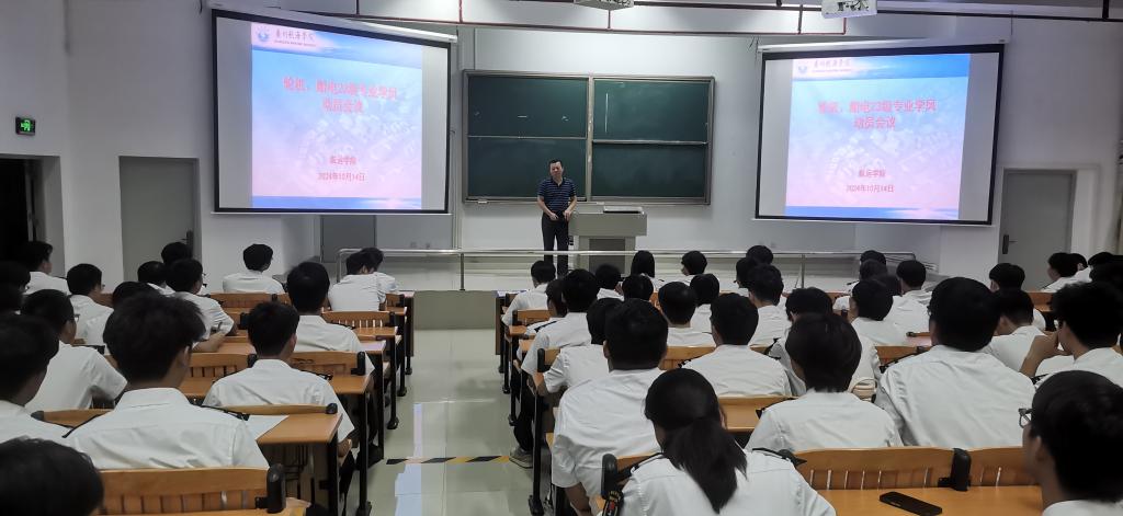 (明胜m88官网供稿)10月14日晚,一场旨在弘扬海员精神、明确学习目标、强化学习态度的学风动员会议在学校健兵北400教室隆重举行。本次会议专为轮机和船电23级专业的学生们定制,明胜m88官网院长魏安教授出席讲话,中队长赵垒主持。