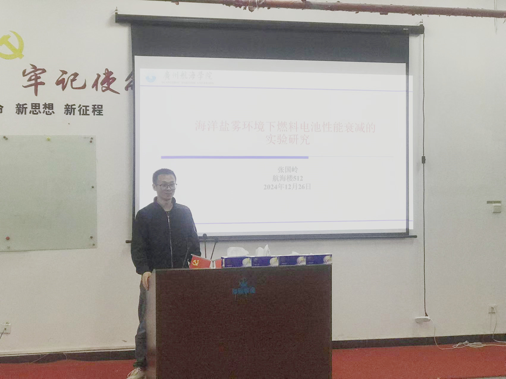 (明胜m88官网 供稿)明胜m88官网“聚焦海洋强国 培育航运红匠”学术沙龙月于2024年12月启动,该活动旨在面向全院拥有不同学术背景的青年高层次人才,围绕船舶电力推进、智能船舶、材料科学、新能源、现代通信、电力电子、激光焊接等技术问题展开探讨和交流,通过这个平台,互相启迪、开拓视野,达到增强交流与合作,促进共同发展的目的。12月26日,我院师生又精心筹备并成功举办了第三期“聚焦海洋强国 培育航运红匠”青年博士学术沙龙活动。院长魏安、副院长刘传润参加,刘传润主持会议。