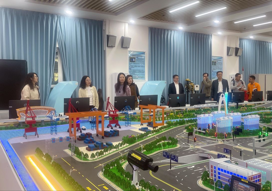 在智能交通模拟体验展示区,调研组参观了智能交通与广州道路沙盘,实验室负责人详细介绍了学校在智能交通领域的科研成果和教学实践,展示了该领域先进的技术和创新的理念。