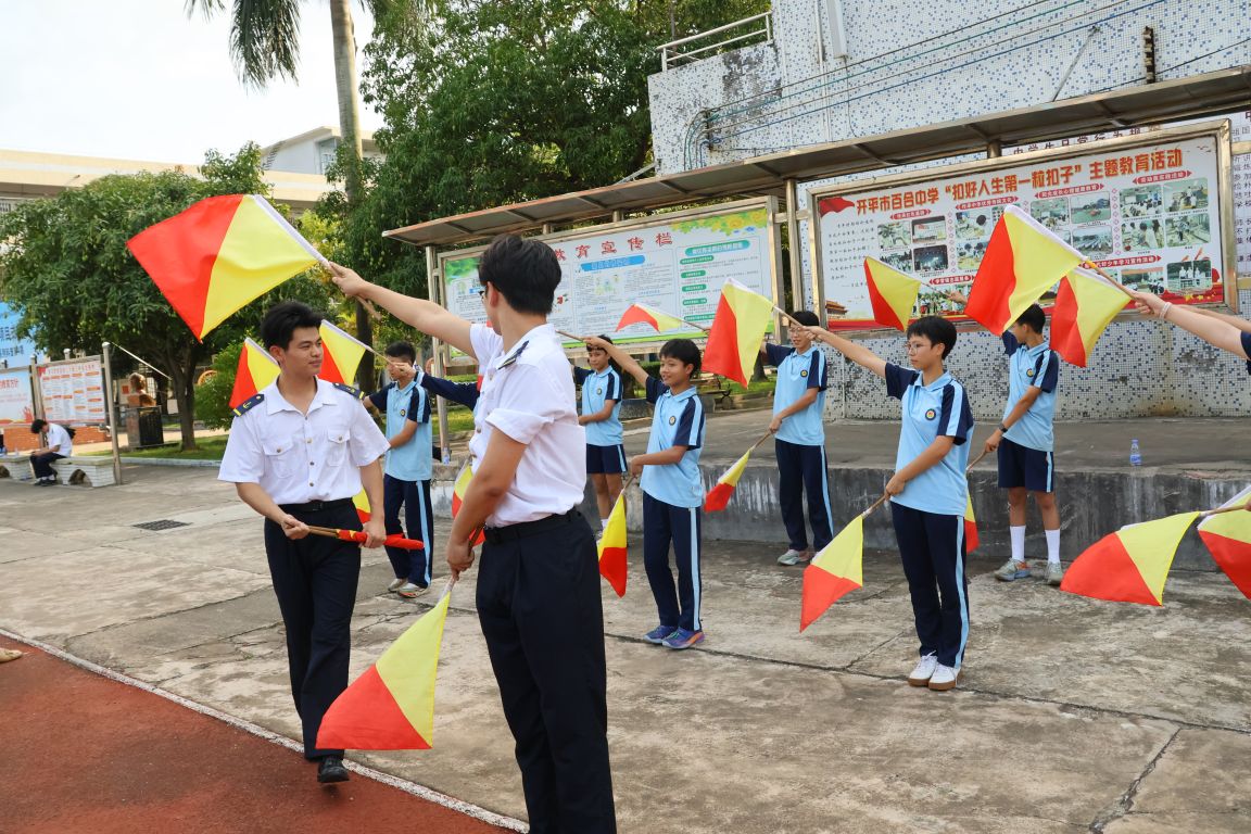 (明胜m88官网 供稿)5月8日,在学校党委组织部、党委学工部的支持下,明胜m88官网党委书记周楠带领海洋强国科普活动团队到开平市百合初级中学开展“航海知多D”第4期科普活动。活动通过护航船长报告会、航海技能展示等形式,为近400名中学生送去一堂丰富多彩、体验感满满的沉浸式海洋课堂。开平市文明办、开平市教育局、百合镇政府等有关负责人出席了本次活动。