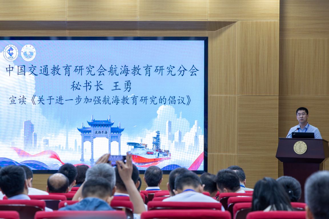 学术年会在学校B10图书馆胜海厅召开,开幕式上,学校副校长陈建平、中国交通教育研究会秘书长张萍分别致辞。航海教育研究分会理事长赵友涛代表分会常务理事会做工作报告,曾庆成理事长介绍工作设想,王勇秘书长宣读《关于进一步加强航海教育研究的倡议》。